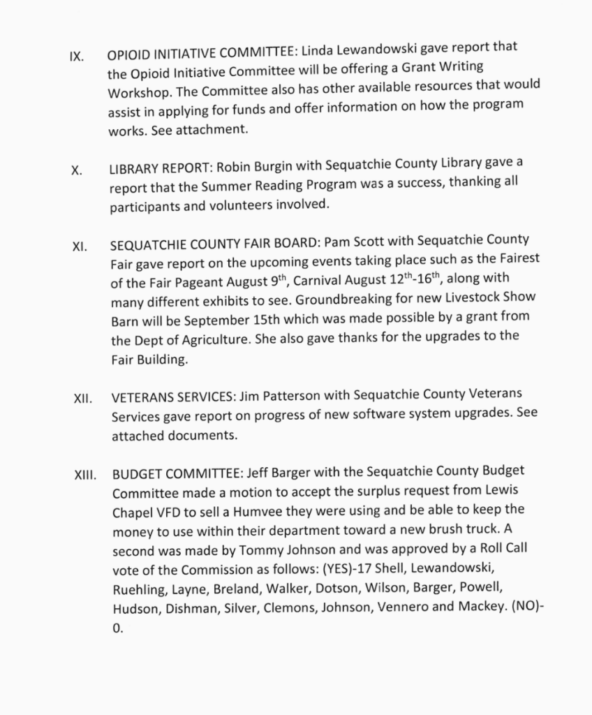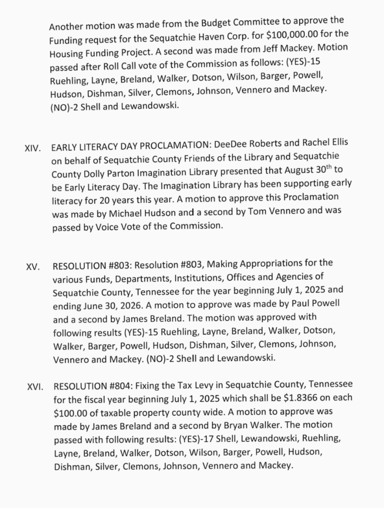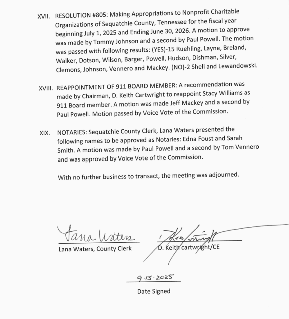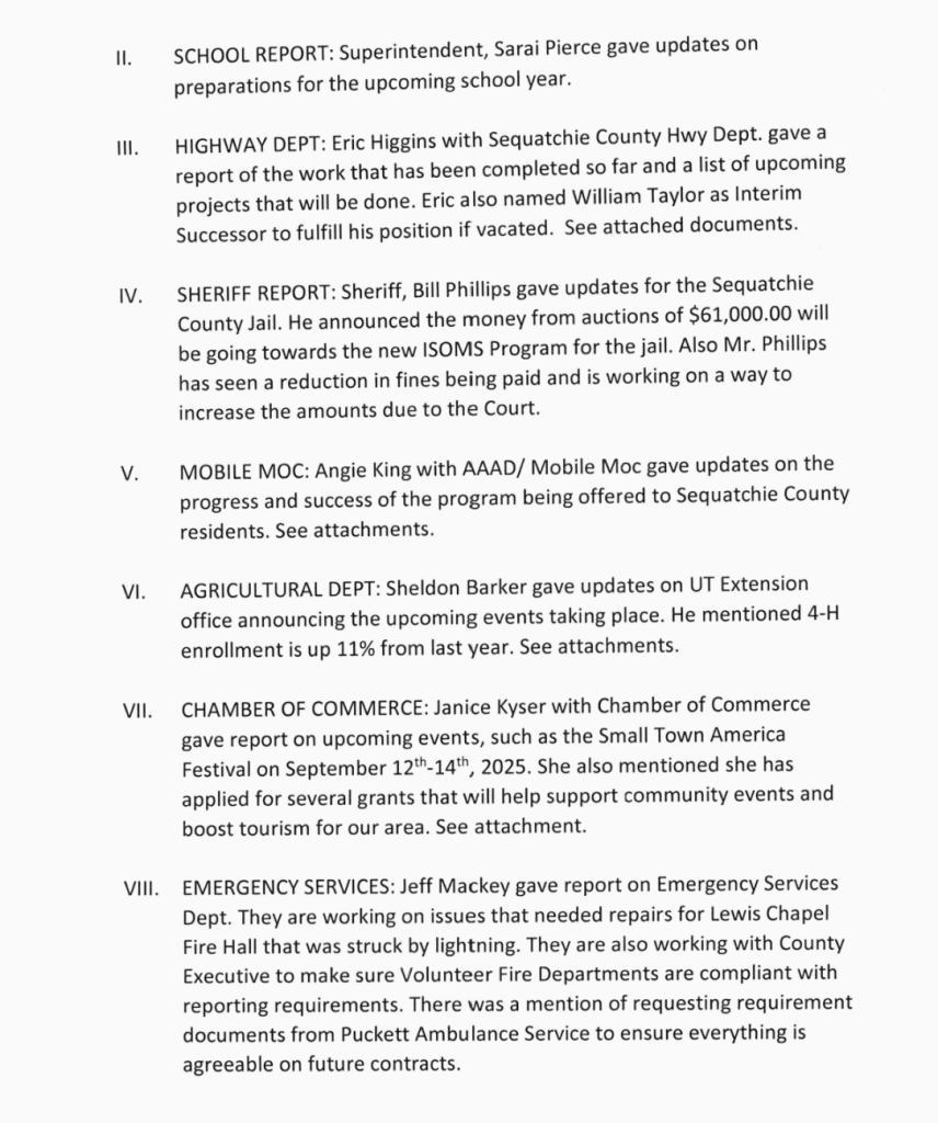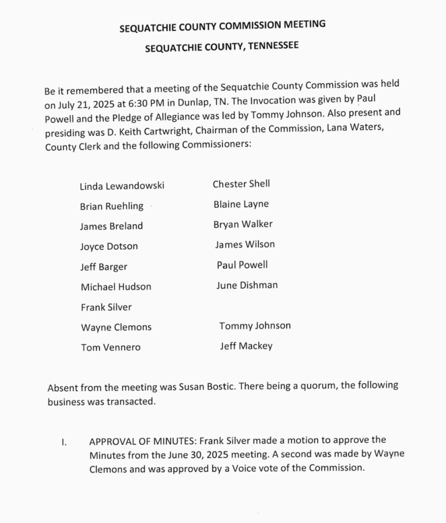 Sequatchie County Commission Meeting Minutes for July 21, 2025.