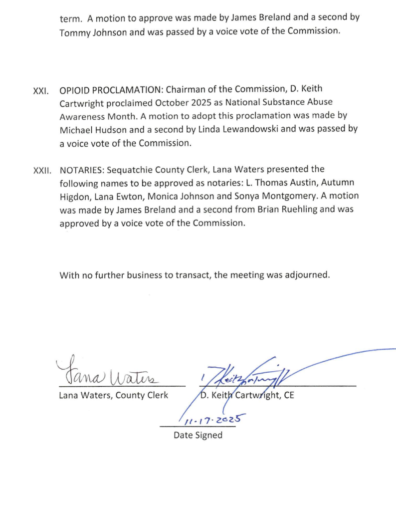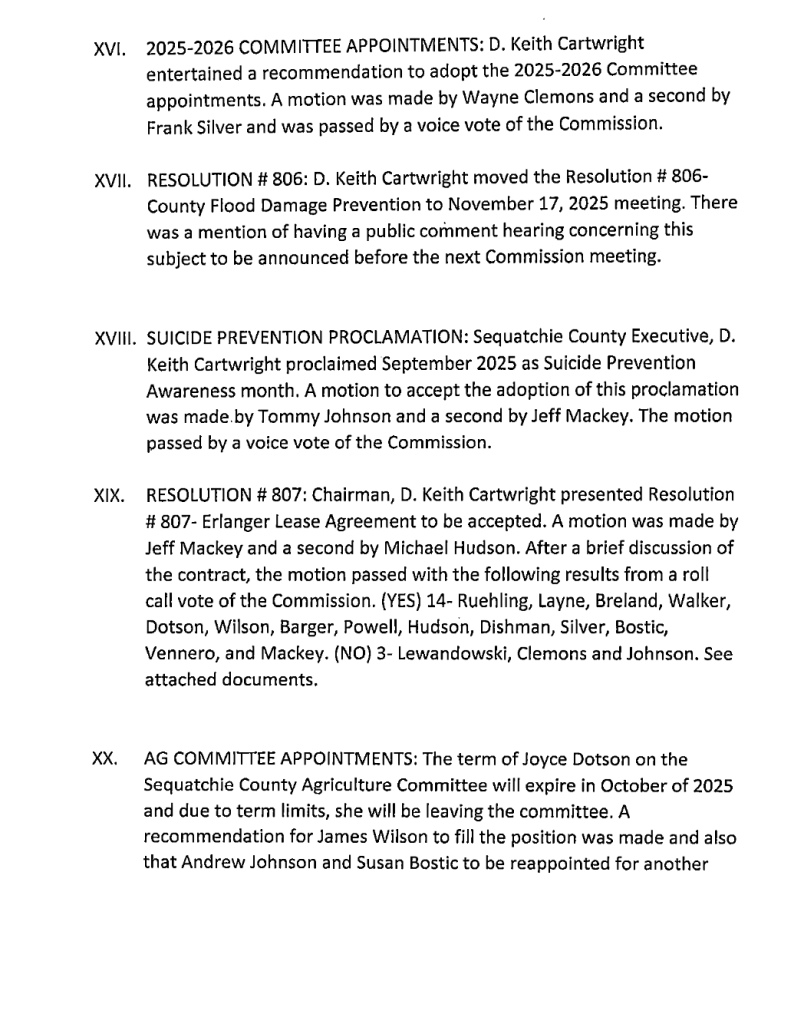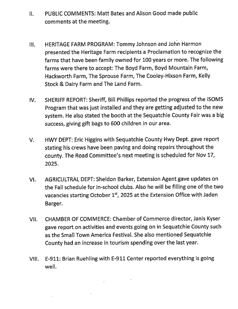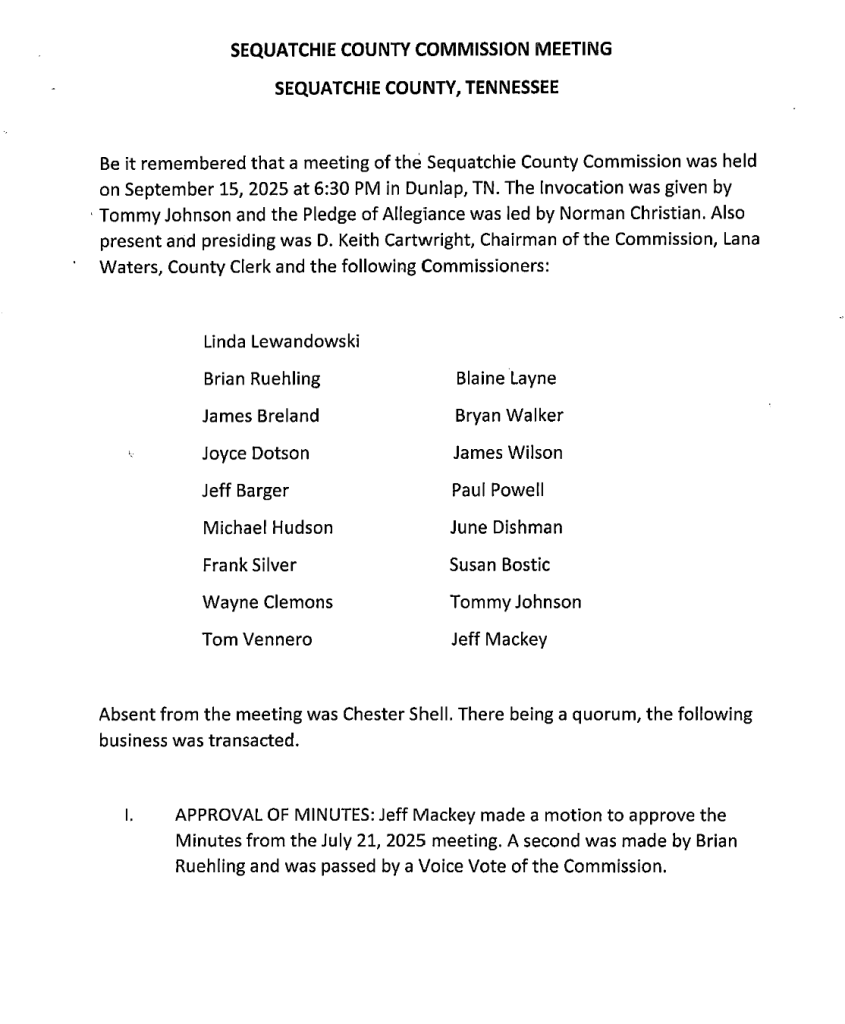 Sequatchie County Commission Meeting Minutes for September 15,2025